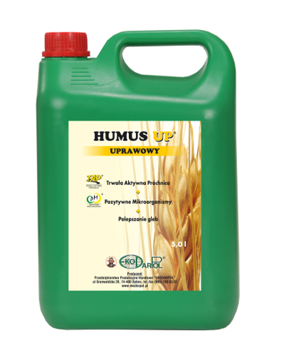 rzeznaczony jest do wszelkich roślin w uprawach Do wszystkich upraw wielkotowarowych, polowych i sadowniczych oraz pod osłonami, jak również w parkach i terenach zieleni. Powoduje znakomite efekty wzrostowe zarówno w uprawach ekologicznych jak i tradycyjnych. HUMUS UP zastosowany doglebowo istotnie poprawia jej strukturę i aktywizuje życie bilogiczne. HUMUS UP zastosowany 2 krotnie w roku doglebowo i 4-6 razy dolistnie w okresie wegetacji roślin powoduje wysokie i zdrowe plonowanie nawet na słabych glebach. Na glebach mocno zdegradowanych dawkę HUMUSU UP można zwiększyć nawet 2-krotnie i dodać AKTYWITU PM. Stosując HUMUS UP w uprawach rolniczych dbamy o zdrowie swoje oraz swoich bliskich zmniejszając ryzyko pojawienia się chorób cywilizacyjnych.